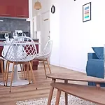 Along with tea and coffee making equipment, the apartment features a fully furnished kitchen equipped with a fridge, a toaster, and kitchenware. The apartment is only a stone's throw from Royan - Gare bus station.